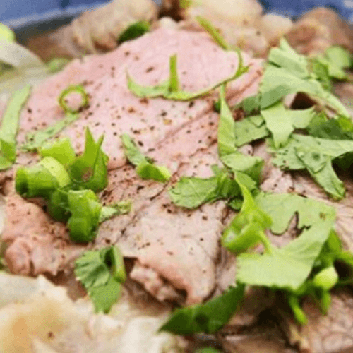 (Angus Beef slices Fat and Thin, potato noodles, white onions, green onions,Bell peppers)